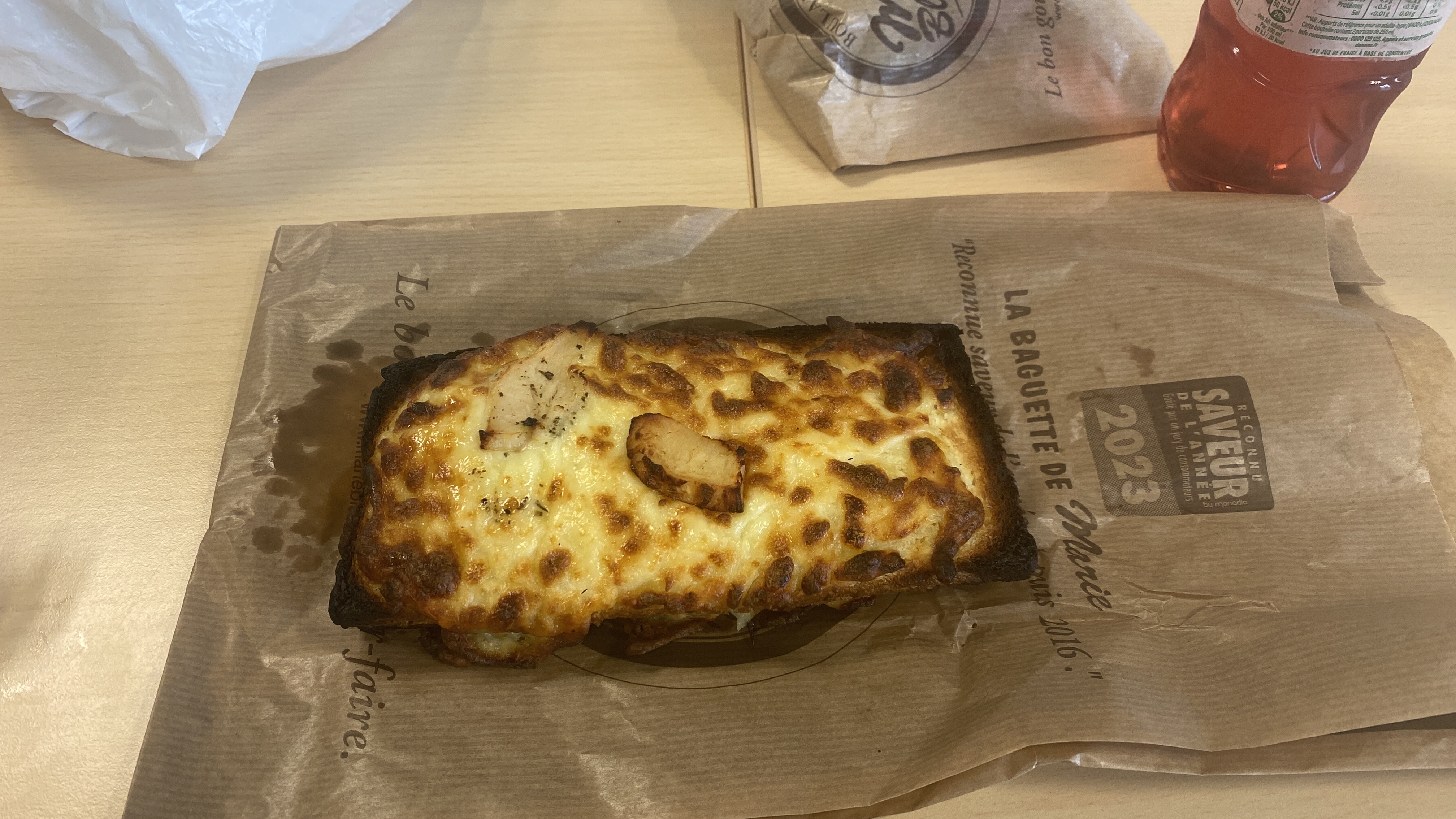 Bonjour, commandé ce midi 06/04/2023 un croque poulet et voilà ce que j’ai eu un croque trop cuit et croûte brûlé. Je ne sais pas quoi en pensez pourtant je suis déjà une cliente fidèle mais je suis outré.