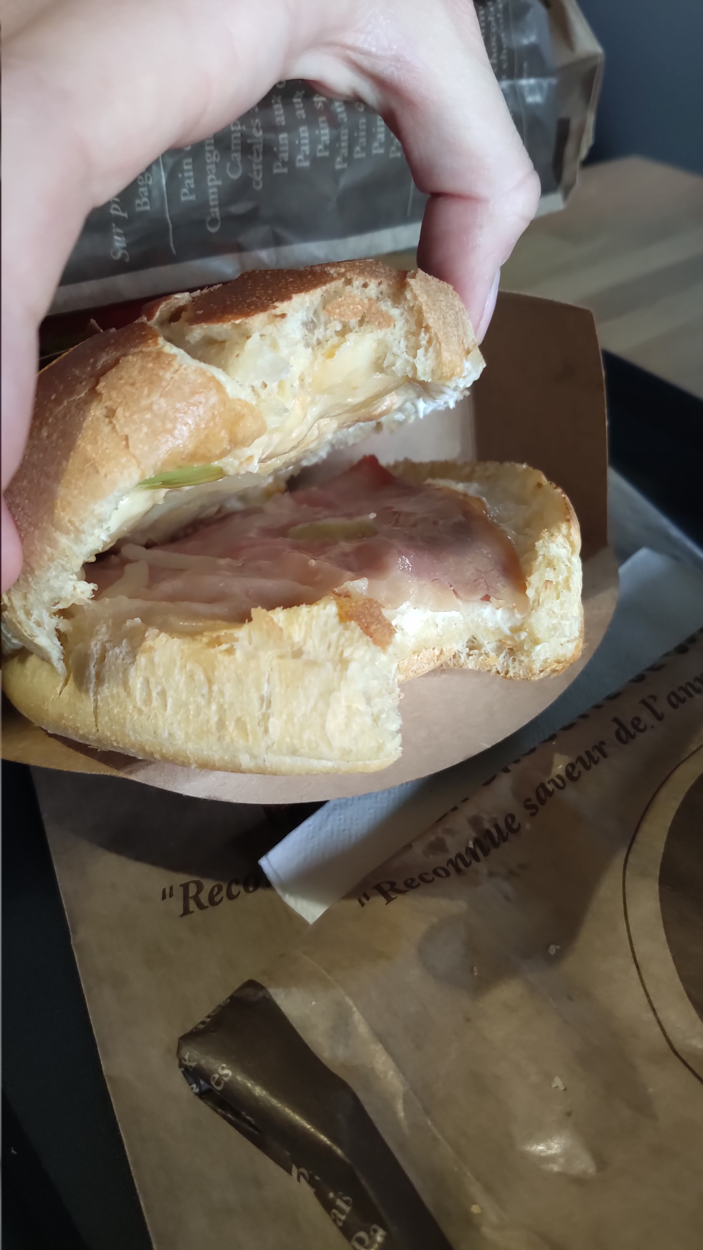 Accueil pas top , le midi c’est limite notre priorité c’est le pain et pas les salariées qui veulent prendre un sandwich , trop d’attente pour vouloir manger rapidement , mauvaise expérience sur le jambon-beurre crudité emmental , le beurre c’est 5g ? Faut arrête un peu ! quelle dommage !