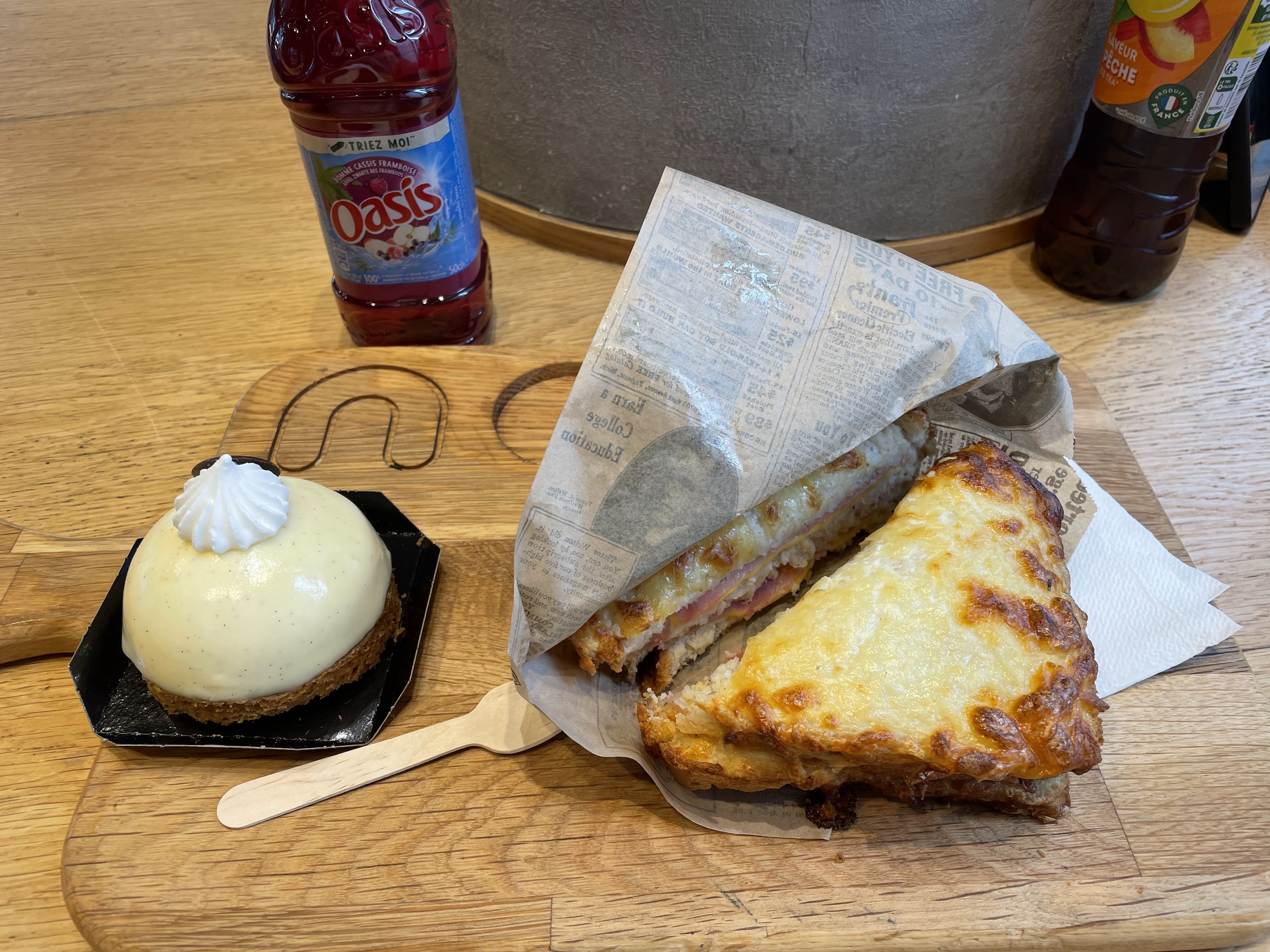 Nous sommes un samedi après-midi mais malheureusement il ne restait plus grand chose donc nous avons pris de croques monsieur et une pizza : très déçue, ce n’était pas appétissant , et cela n’avait aucun goût.. Nb: Il faut vraiment revoir l’entretien de vos toilettes car c’est inconcevable de ne pas pouvoir se laver les mains correctement quand il y a une odeur nauséabonde et persistante qui viens troubler notre organisme.
