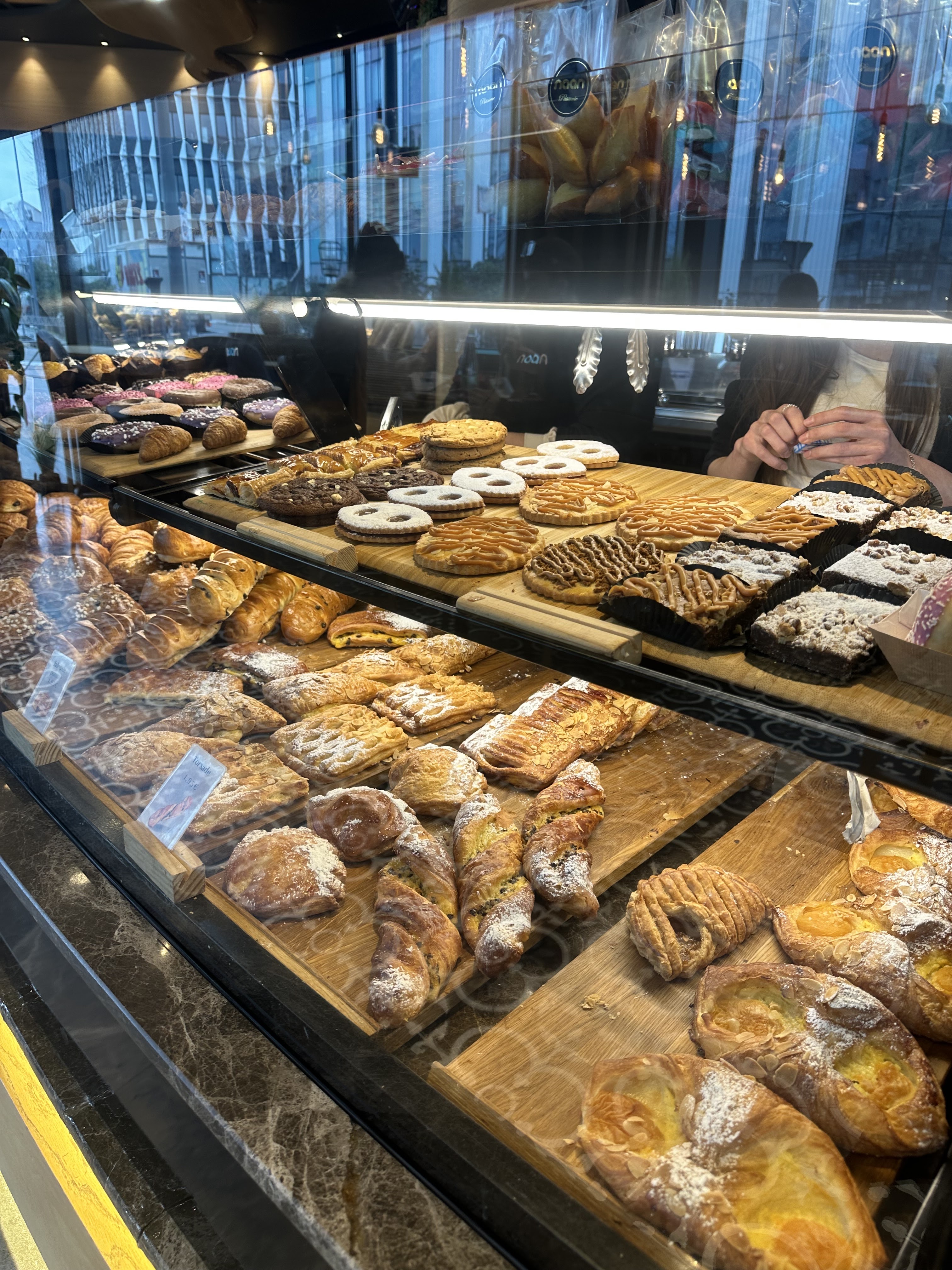 J’avais pour habitude d’y aller régulièrement pour boire un chocolat jusqu’à ce que le nouvel établissement ouvre à côté « naan sweet ». Boulangerie qui s’est complètement détériorée. Le chocolat n’est plus le même. L’hygiène des fauteuils est vraiment pas à la hauteur. Des miettes et des traces de saletés sur tous les fauteuils. Idem pour les tables qui sont pratiquement constamment remplis de miettes. Je doute que les viennoiseries sont faites maison. En revanche les pâtisseries sont très bonnes ainsi que le pain. Pour ce qui est des donuts cookies et muffin cela vient tout droit des grandes surfaces. Muffin aux oreo déjà vu à carrefour. Pareils pour les donuts ! Quant au personnel tout dépend des personnes mais pas très souriant et aimable je parle essentiellement pour un des garçons. Donc très dommage. Au final il n’y a que les pâtisseries en vitrine et le pain qui tiennent la route.