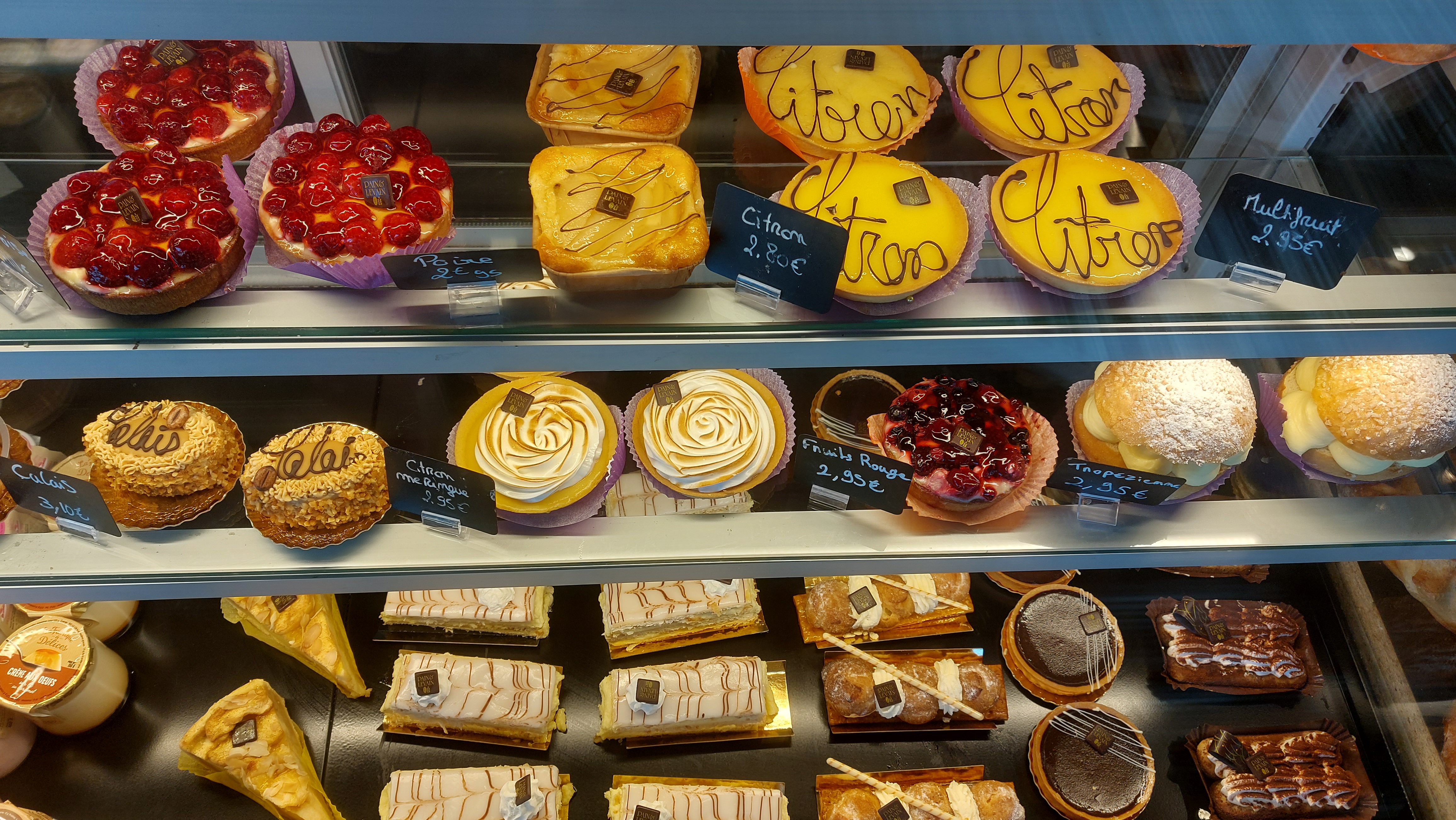 De belles pâtisseries fraîches et du café (le pain avait l'air bien aussi !), mais le personnel semblait un peu pressé/grincheux avec des clients qui ne parlaient pas parfaitement français.