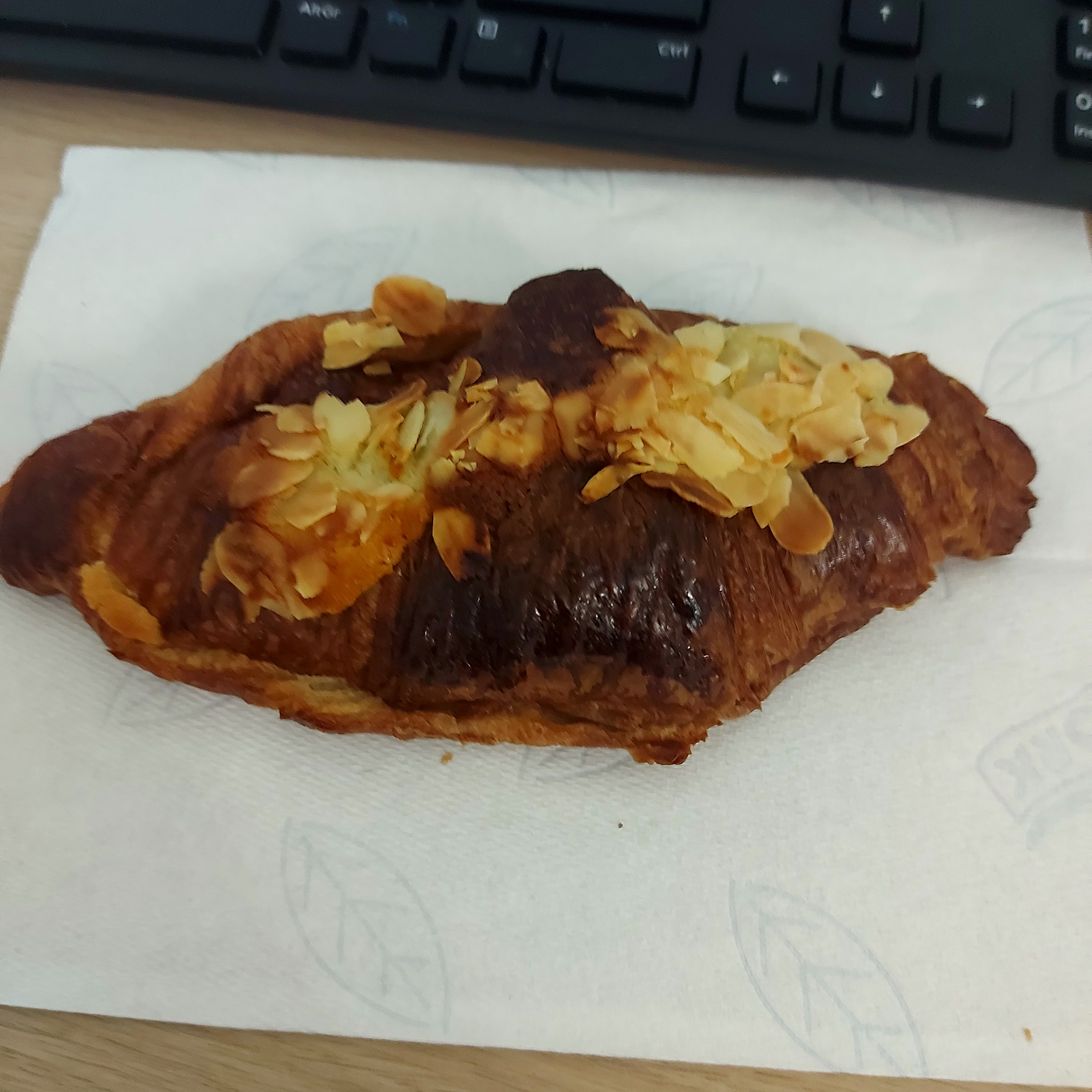 Croissant limite brûlé et pas de croustillant ! Je pense sincèrement que les employés recyclent les croissants de la veille, au vu de la texture. Dommage