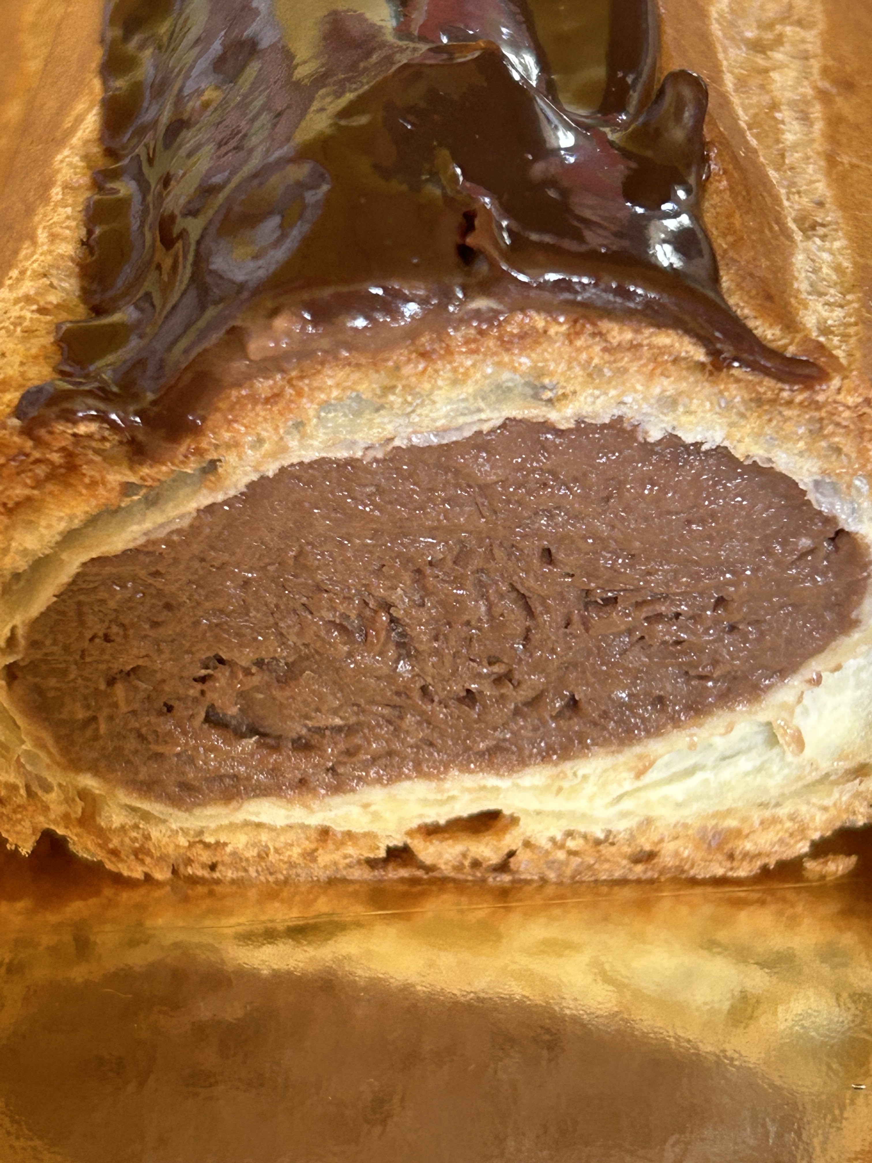 Bonjour, nous avons pris 2 éclairs au chocolat géants ce jour même. Que puis-je dire à part que sur 6 personnes en ayant mangé nous sommes 4 à avoir eu mal au ventre. La crème est granuleuse et insipide, et la pâte complètement détrempée et pas cuite par endroits. Je sais bien que c'est industriel mais là j'ai quand même un doute sur le respect des normes d'hygiène... Vous verrez bien sur les photos. Désolé mais je ne recommande pas et ne reviendrai plus dans votre établissement