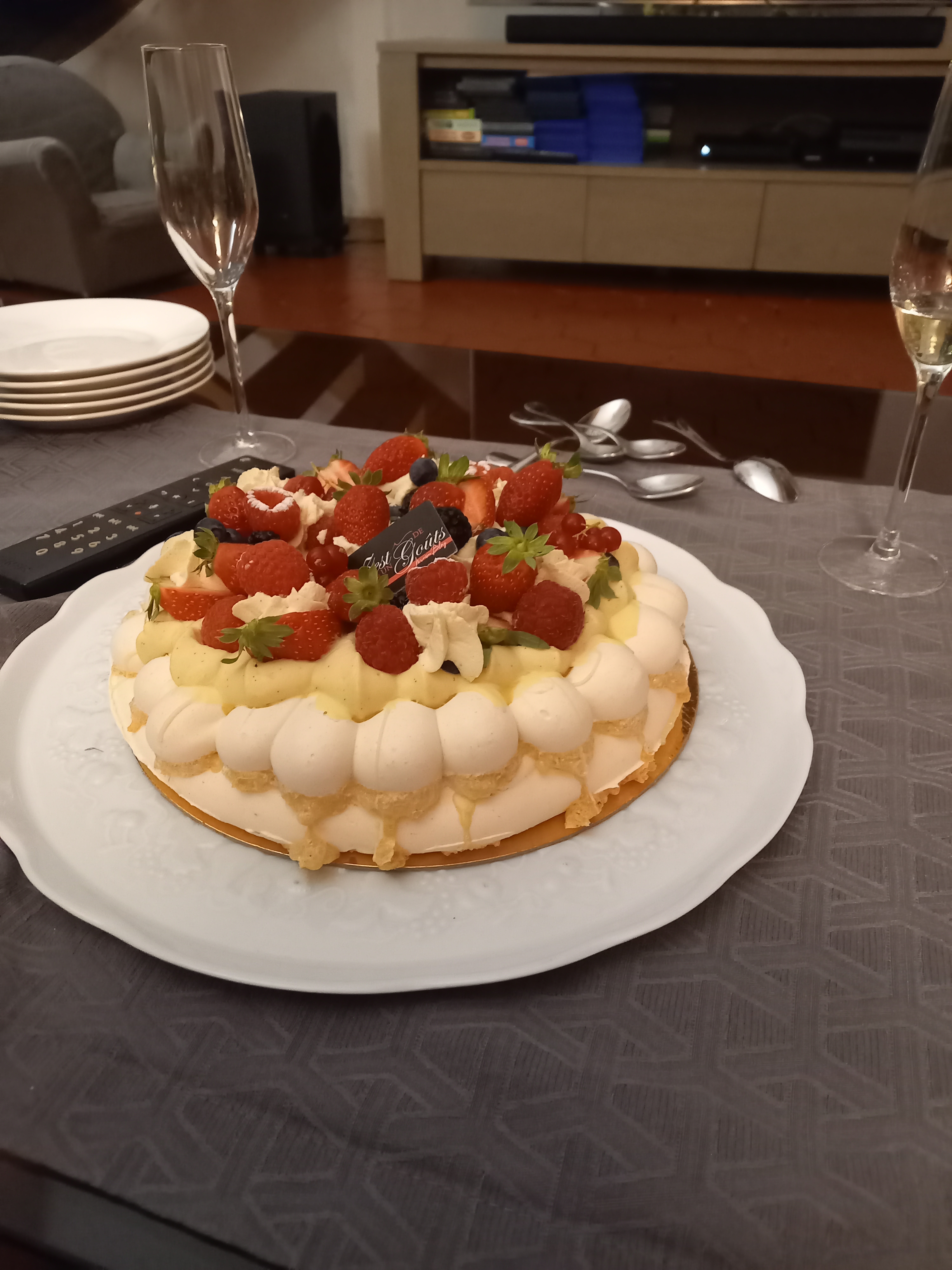 Un superbe gâteau d'anniversaire pour 20 personnes à la framboise, goût succulent mise en forme au top ! Je recommande à 100% 🥰